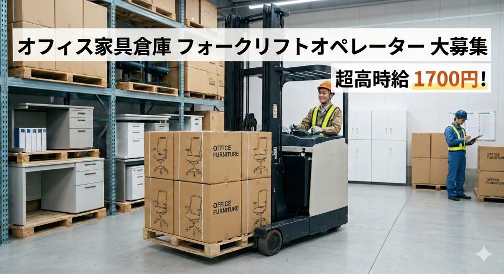 《超高時給1700円》オフィス家具のフォークリフト作業☆彡