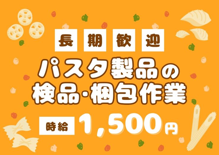 創業90年を超えるパスタ工場で 簡単な検品や梱包作業をお願いします!