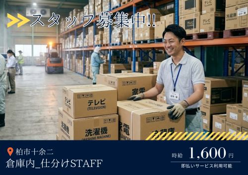 【柏市】時給1,600円/テレビや冷蔵庫などの仕分け