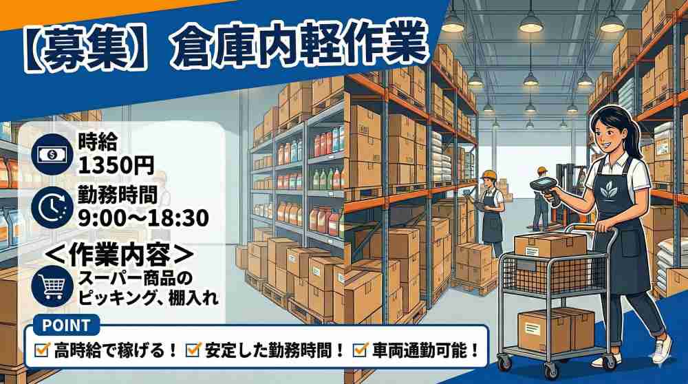 時給1350円☆彡 重量物なし♪倉庫内での軽作業