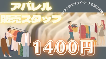 【アパレル販売】週3日~OK!高時給1,400円♪