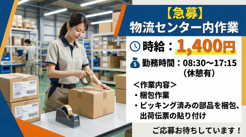 送迎有!高時給1400円☆彡倉庫内軽作業♪車通勤もok♪