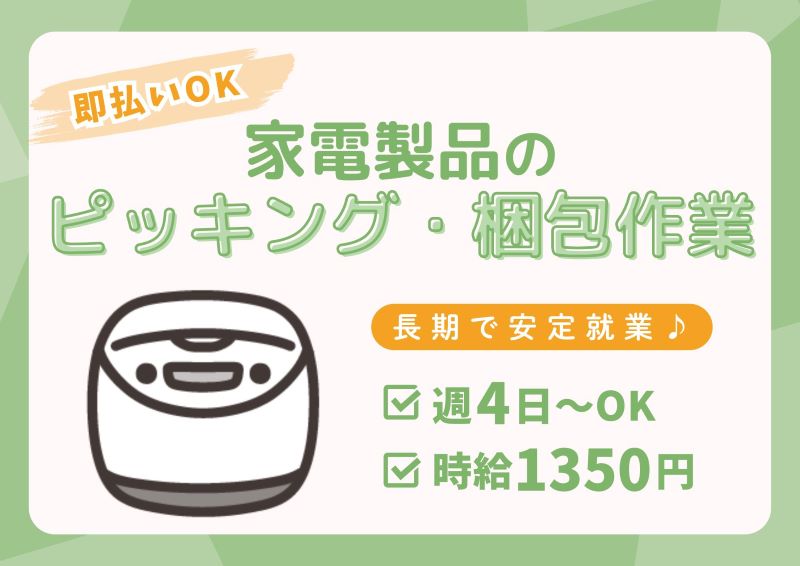 空調有!!/新設倉庫での家電ピッキング★高時給1350円