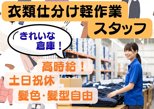 週3~OK!衣類を扱う倉庫内軽作業!高時給1700円♪