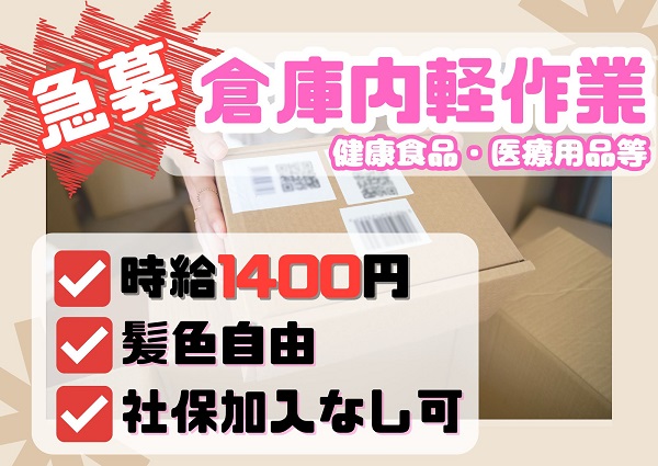 急募!時給1400円!!!薬局商品の梱包・仕分け♪