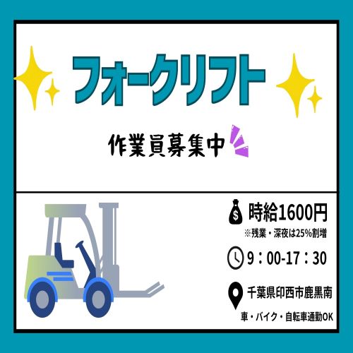 《印西市》高時給1600円☆彡フォークリフト作業員募集!