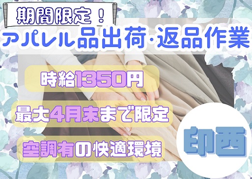 【★2か月限定★】重量物無し!!アパレル倉庫内作業