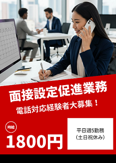 【時給1800円】応募者の方に面接の予約を促す架電業務!!