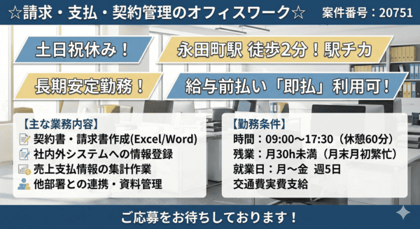 【高時給1800円】請求・支払・契約管理業務!≪永田町≫