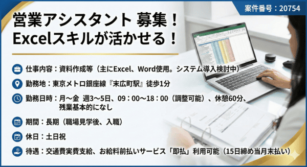 【高時給1700円】営業のアシスタント業務!≪末広町駅≫