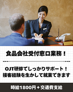 【高時給1800円交通支給】食品会社受付業務