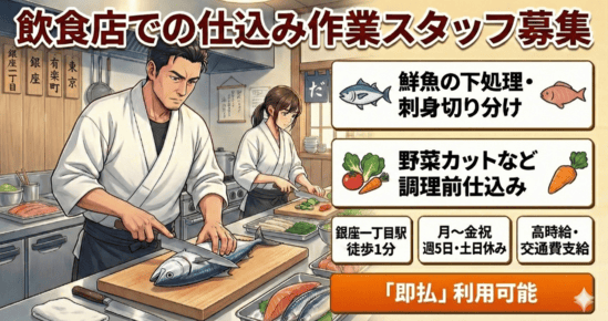 【時給1700円】飲食店での仕込み作業≪銀座一丁目駅≫