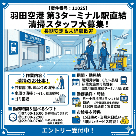 【時給1750円】羽田空港の清掃業務≪日勤夜勤≫
