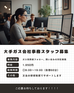 ★11月17日開始★時給1650円!大手ガス会社での電話業務♪