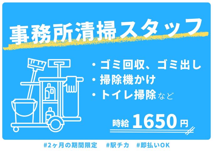 ▽2ヶ月間限定♪/オフィス内の清掃作業スタッフ☆彡/週5