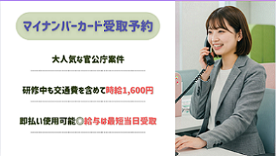 【高時給1600円】マイナンバーカード受取予約受付☆彡