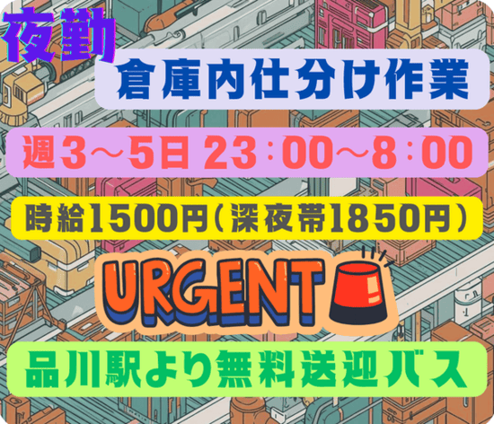 【最大時給1875円】簡単倉庫内作業☆彡≪品川≫