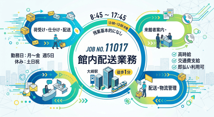 【時給1500円】オフィスビルの館内配送業務≪大崎駅≫