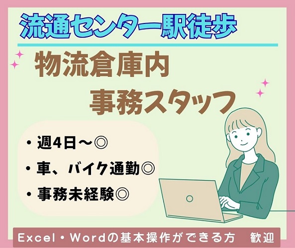 【車◎流通センター駅】週4日~★物流倉庫の事務スタッフ