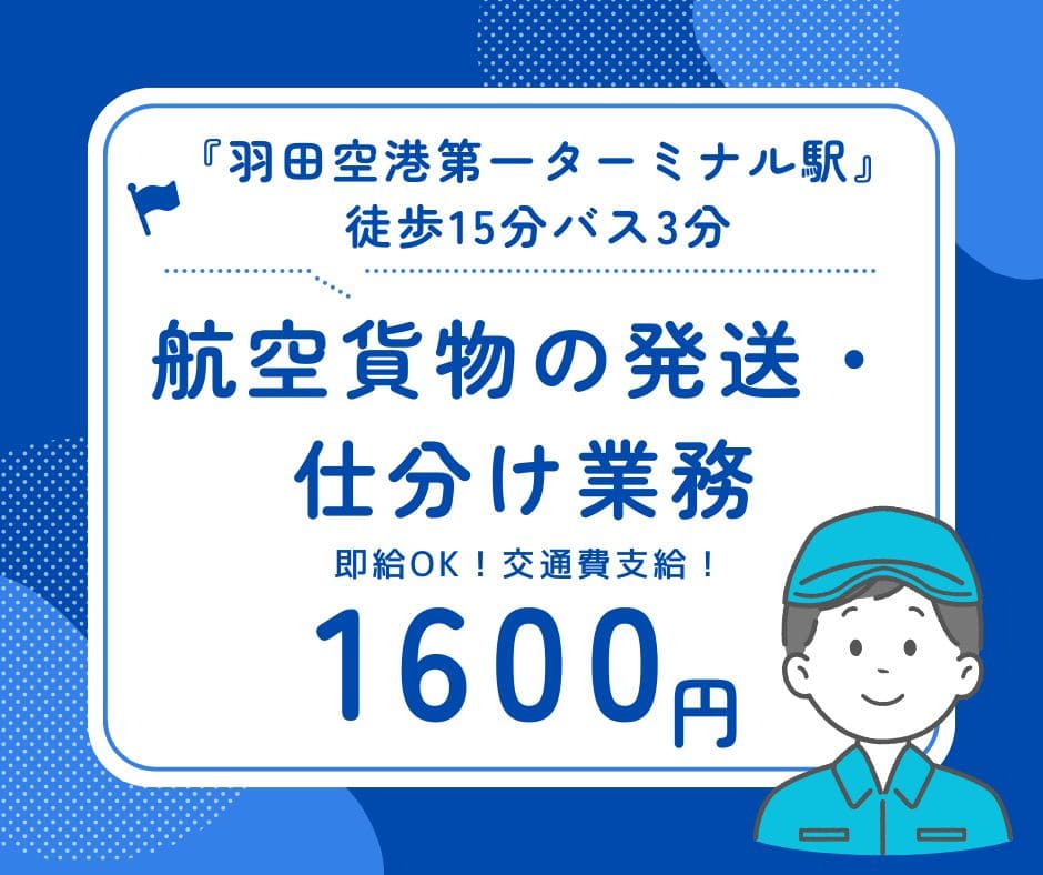 ☆時給1600円+交★航空貨物の発送・仕分け業務