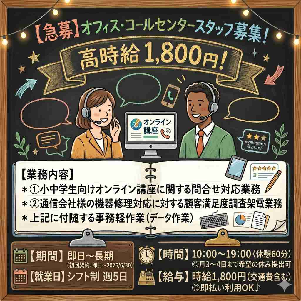 高時給1800円★コールセンターの発信業務メインのお仕事です★