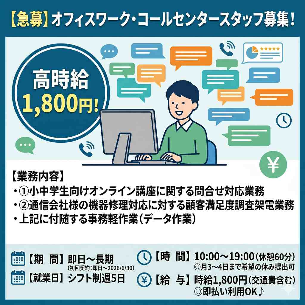 即日~長期OK【時給1700円】未経験◎お問い合わせ対応