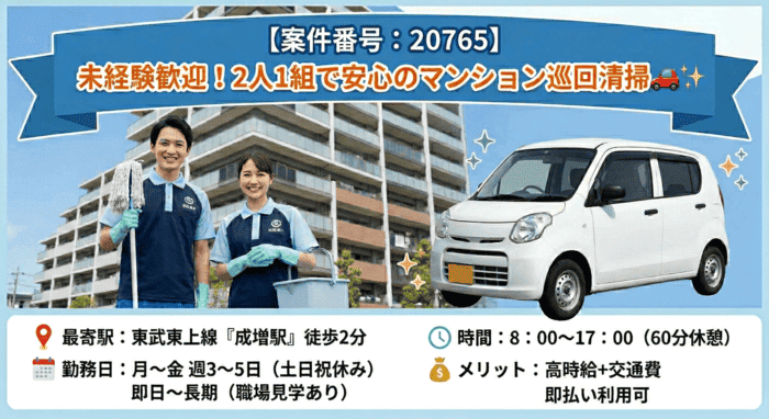【成増駅】駐輪場内の自転車整理、清掃業務