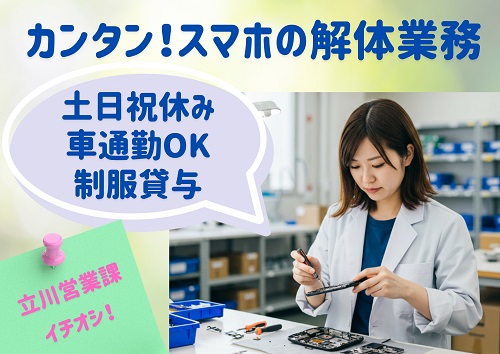 【12月末まで】マイカー通勤OK!簡単スマホ解体スタッフ募集 in 八王子市