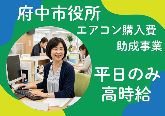 ★4/15~10/31★府中市役所でのエアコン購入費助成事業に係る事務スタッフ募集/扶養内OK!土日祝休み♪