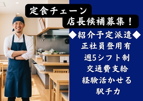 紹介予定派遣【大手定食チェーン】店長候補募集!