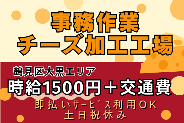 【鶴見エリア】時給1500円+交通費★食品製造工場での事務