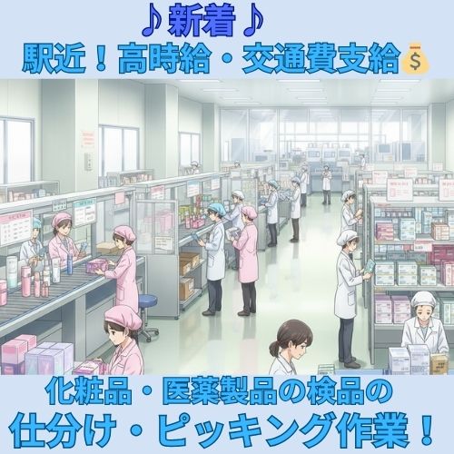 高時給+交通費♪駅近♪化粧品・医療品メーカー製品の検品