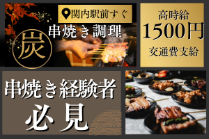 串焼き経験者★【関内駅徒歩すぐ】時給1500円+交通費!