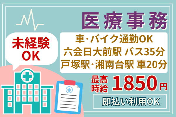 未経験◎【六会日大前駅バス】最高時給1850+交★医療事務
