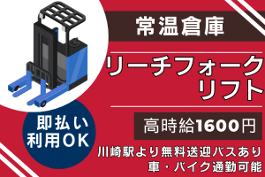 車・バイクOK【東扇島エリア】即払可★常温倉庫内リーチフォーク!