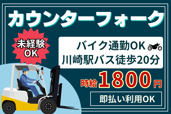高時給1800◎即払OK【川崎駅バス】リーチフォーク+倉庫内作業