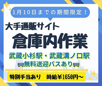 1/10まで【無料送迎バス】時給1650円から★アマゾン倉庫作業