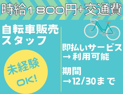 期間限定【宮崎台駅徒歩】時1800+交★自転車販売のお仕事