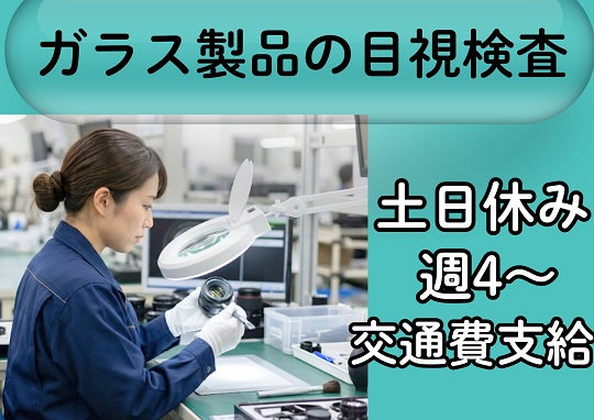 NEW【高時給1600円+交通費◆ガラス製品の傷や汚れがないかのチェック業務】土日休み!