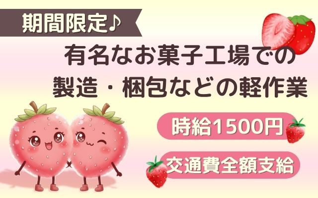 【平塚】お菓子工場でのお仕事♪時給1500円*交通費支給有
