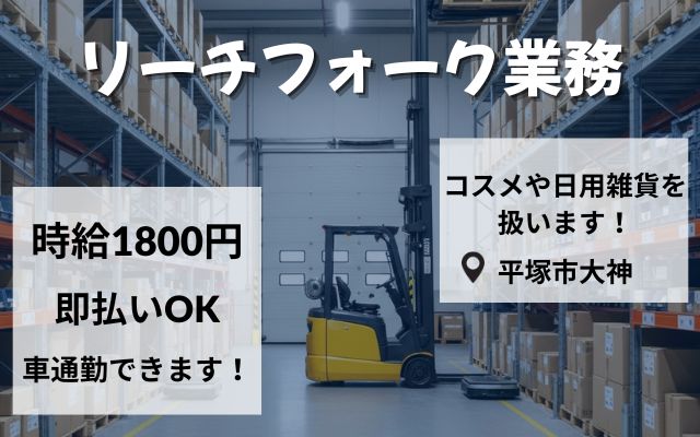 送迎有!!【平塚】時給1700円/フォーク作業★即払可
