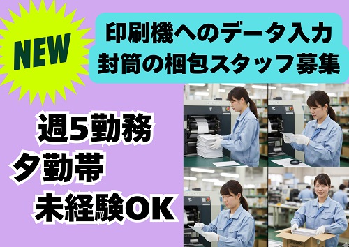 藤沢エリア【時給1450円】16時~夕勤◆印刷機へのデータ入力・封筒の梱包スタッフ募集