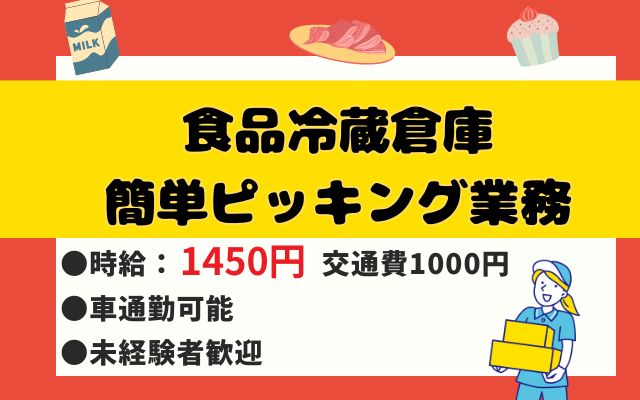 $車OK!時給UP!1450円/藤沢/即払可/冷蔵倉庫食品仕分け♪