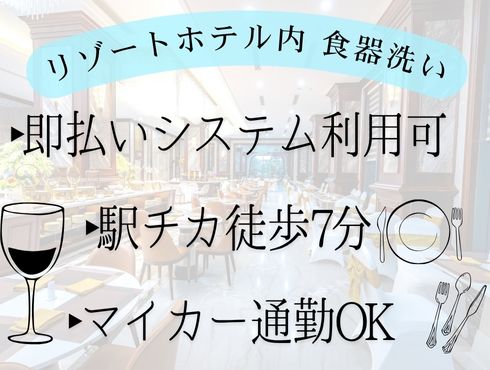 ホテルレストランお皿洗い【三浦海岸駅・車通勤OK】シフト制!