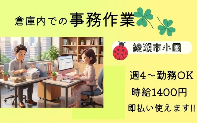 人気案件【綾瀬】時給1400円/即払いOK*事務作業♪