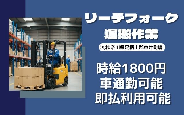【中井町】時給1800円/フォークリフト業務!即払いOK♪
