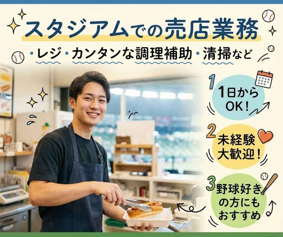 ◎野球が好きな方にもオススメ★球場内の売店で販売業務のお仕事です