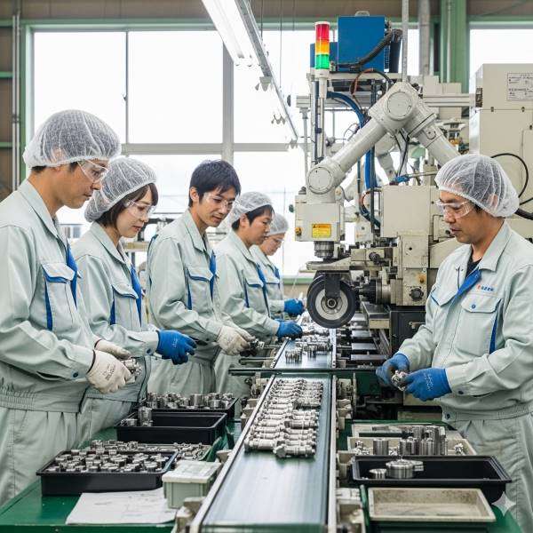 研磨機への部品投入作業
