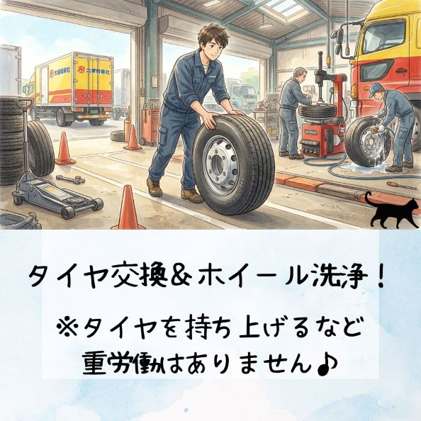【未経験OK】タイヤの交換補助やホイールの洗浄など♪
