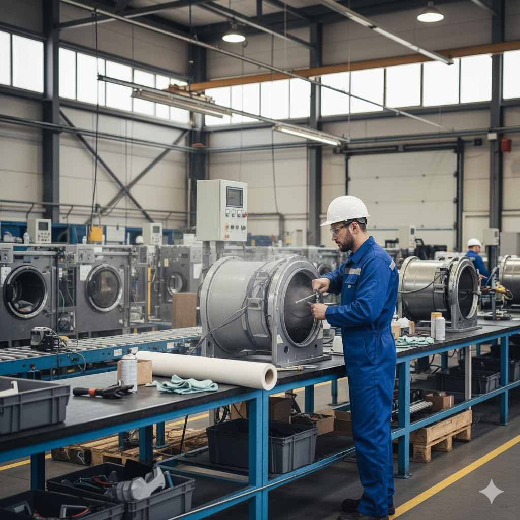 業務用洗濯機製造に伴う梱包・検査・塗装工程などの作業で難しくありません。